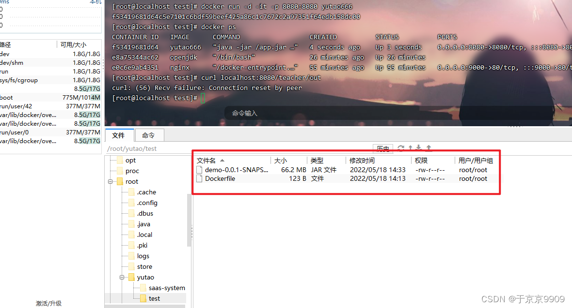 jar包本地运行没问题之后,将jar包和Dockerfile文件上传至linux服务器