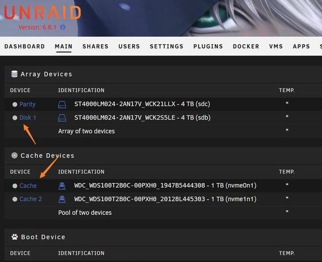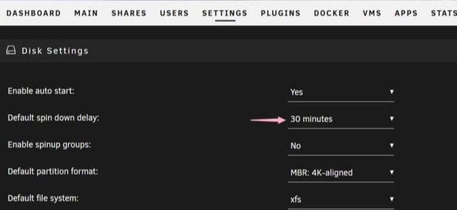 2、unRAID的特色是 硬盘支持休眠,而且可以单盘休眠,在休眠后,功耗还会降低: