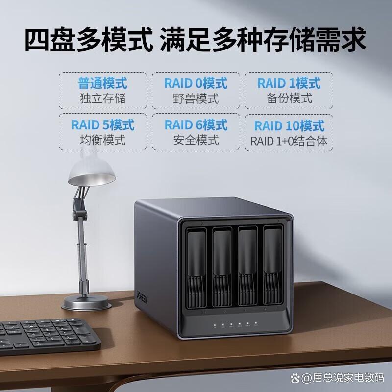 设备支持多种存储模式,包括RAID 0、RAID 1和RAID 5等,提供灵活的数据备份方案,适应不同的数据安全需求。其四盘位结构允许用户根据实际需求灵活配置,满足日常文件存储、备份和共享的多样化要求。通过UGOS系统,用户能够方便地管理文件,实现远程访问,无需复杂的设置,提升了使用体验。