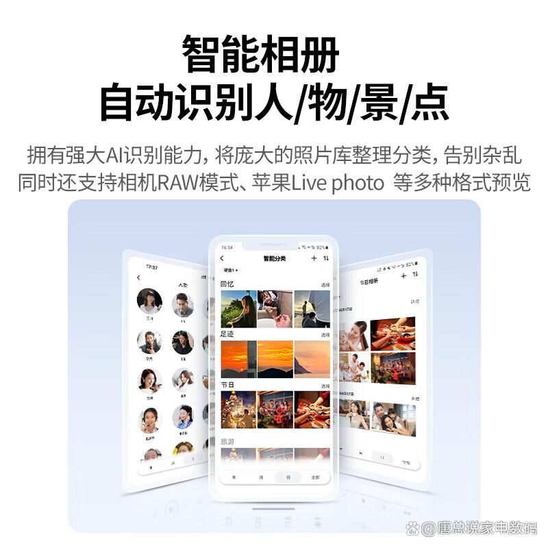 这款设备不仅适合个人用户,也非常适合家庭使用。用户可以通过云影院功能,将个人影视资源整理成个性化的媒体库,支持自动匹配影视海报和信息,提升观影体验。另外,智能AI相册功能能够自动识别照片中的人物和场景,实现照片的快速分类和整理,帮助用户轻松管理庞大的照片库。