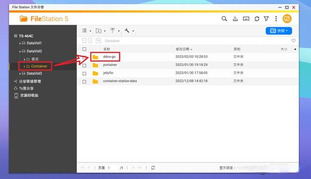 先打开威联通的“File Station 5”,在“Container”目录下创建一个“ddns-go”的文件夹。