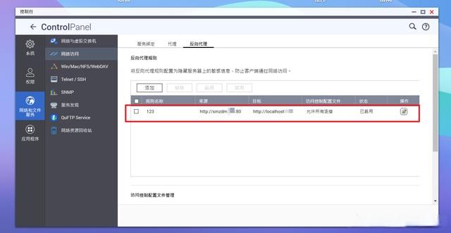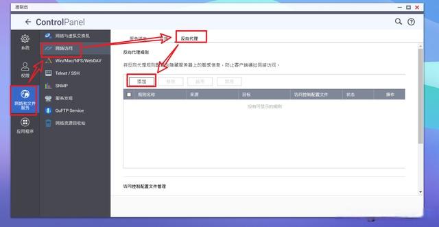 打开威联通的“控制台”,依次点击-“网络和文件服务–网络访问–反向代理–添加”,