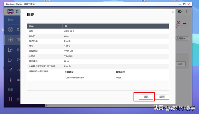 差不多20秒左右,返回“Container Station容器工作站”总览,就能看见NAS已经完成了“ddns-go”容器的创建了!