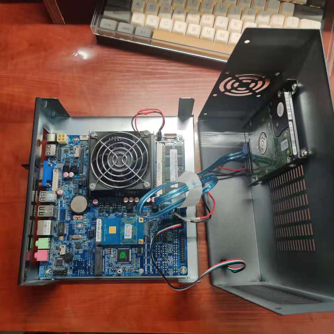 最近在网上买了个的半高带扩展口ITX小机箱,更换了原来的亚克力架子。感觉电脑还是要有个机箱的,好看还防尘,原来那个亚克力机箱是开放式的,主板和风扇上都积满了很多灰尘,好在有鼓风机,吹了下又干净了。机箱的电源开关是带有电源指示灯的,我觉得晚上太亮了就没接线了,现在这块主板是来电自启的,其实电源开关可以不需要了。现在CPU有风扇压着,温度是40几度,夏天这个温度还可以接受。另外考虑买个Mini PCI-E转SATA3转接卡,接个固态硬盘,上面专门跑Docker,但数据迁移有点麻烦,以后再说吧。