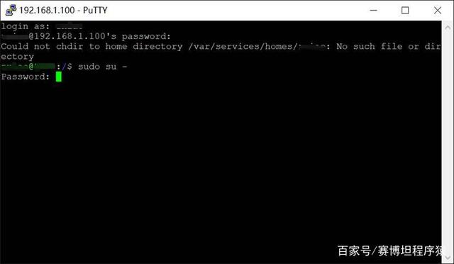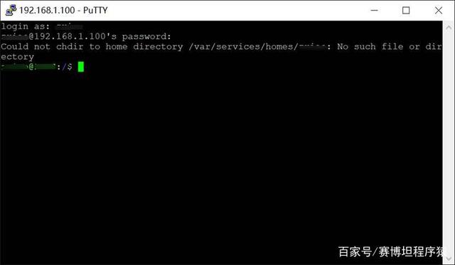 然后将会打开一个终端窗口,熟悉linux的小伙伴就会非常熟悉这个界面。接下来输入群晖系统的管理员用户名和密码进行登录。需要注意的是输入密码时屏幕上将不会有任何显示。