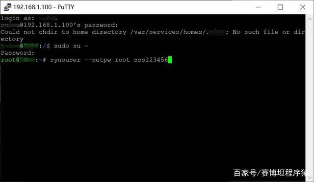 为了方便以后使用,可以直接将root账户密码修改为自定义密码,这样就可以直接用root账户通过SSH来登录NAS了。输入命令“synouser –setpw root sss123456”,最后的sss123456为要设置的密码,请根据自己喜好设置,但不建议和群晖账户使用相同的密码。