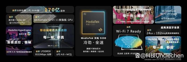 为什么说纸面参数?因为每款新发布的芯片,开场都会自吹多么厉害,但实际的体验很可能会有差距。比如骁龙888,曾经也吹过功耗多么好,但后来的实际表现各位都知道。回到天玑9200上,其实除了性能提升外,我认为更大的看点在于技术支持。具体来说,其支持UFS 4.0、LPDDR5X、WiFi7,意味着下一代旗舰机也会向这些技术普及。