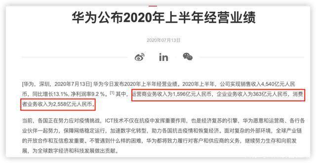 2020年上半年的收入中消费业务收入占比最高,而消费者业务中最重要的便是智能手机业务,2019年华为手机全球出货量2.4亿台,居全球第二。而手机在更新换代中最重要的就是CPU等芯片,华为的麒麟9000芯片是5nm级别,而整个全球能够量产5nm芯片的企业只有台积电一家,可想而知断供芯片的之后,华为手机业务有多么艰难。