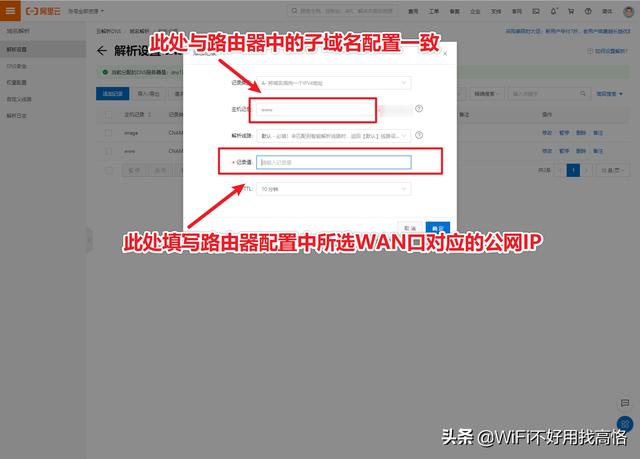 9.新注册的阿里云域名会出现无法创建的错误,这时候登录阿里云,进入域名管理,域名解析,手动配置一次A记录,然后确定保存,如下图所示操作一下即可排除错误。