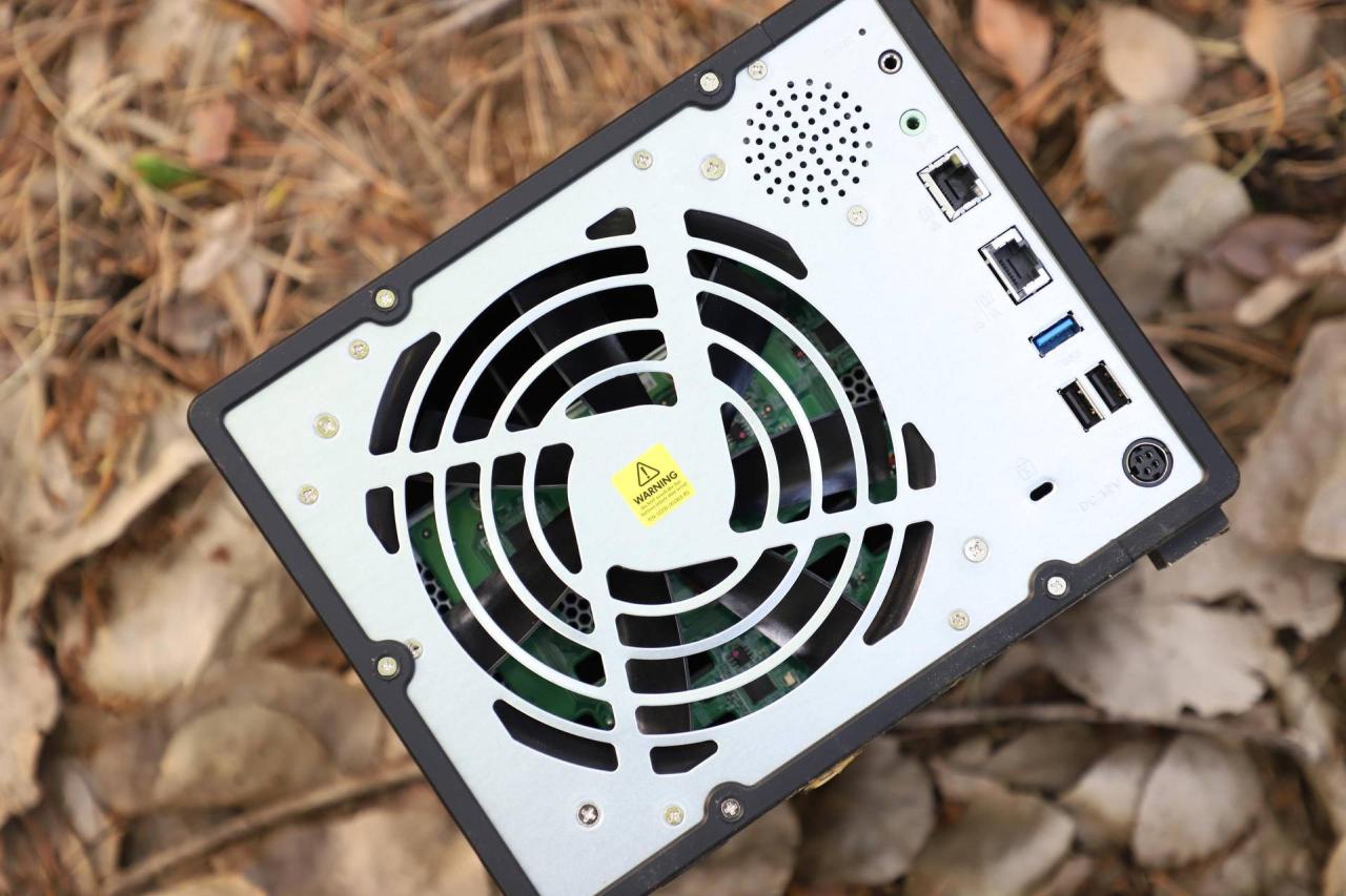 除了前面的一个USB3.0一键备份接口,主要接口都集中在了背部,比较引人注意的就是上面的5Gb网口,具体我们后面在测试。