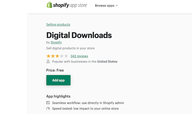 您需要 Digital Downloads 应用程序才能从您的网站上传和销售数字产品。 以下是从 Shopify 仪表板获取它的方法: