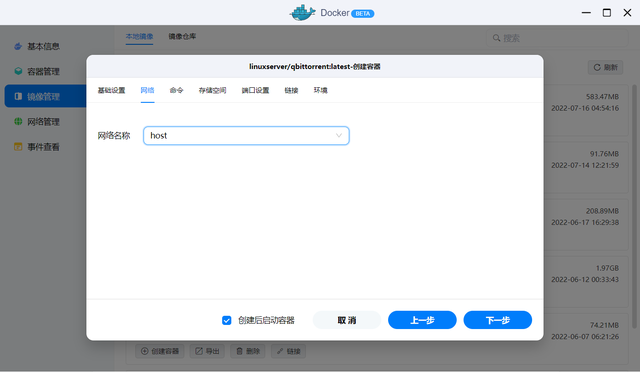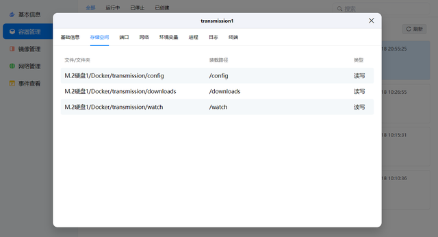 首先咱们在镜像仓库搜索transmission镜像,选择支持“linuxserver/transmission”的版本,点击下载,然后进入镜像管理点击“创建容器”。
