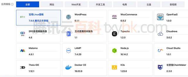 轻量应用服务器提供应用镜像模板,用户可以通过应用镜像一键搭建所需程序及程序依赖的配置环境,如下图: