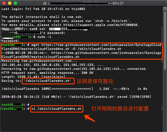 wget https://raw.githubusercontent.com/joshuaavalon/SynologyCloudflareDDNS/master/cloudflareddns.sh -O /sbin/cloudflaredns.sh