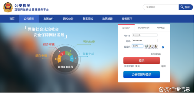 网站公安备案之前,请确定一定是经过ICP备案的,ICP备案是在工信部备案,公安备案是在公安机关网监部门进行备案登记,因为公安备案提交表单的时候,是需要填写ICP备案信息的,这个逻辑要清楚。