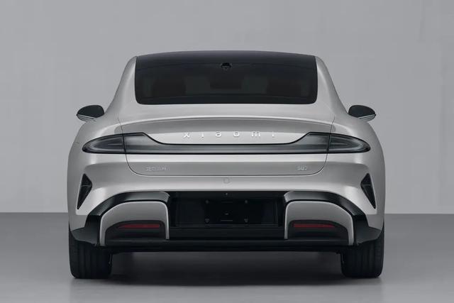 从侧面看溜背车身设计、无框车门设计和隐藏式门把手设计都是现在年轻消费者追求的范,前车门还设计有进气口通道,看上去就有种跑车的战斗风格;尾部采用贯穿式尾灯设计,并且还是两条粗中间细的布局,还有就是小米SU7配电动尾翼,配合后包围处夸张的扩散器设计,可以说非常具有战斗力。