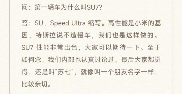 但是在发布之前,雷军分享了一些细节,蛮值得给大家解析的。首先,小米汽车为什么叫SU7呢?据说:“SU7,Speed Ultra的缩写,高性能是小米的基因。”雷军深情地回忆起小米的发展历程,并表示小米汽车也将延续这一传统,打造出真正意义上的高性能轿车。