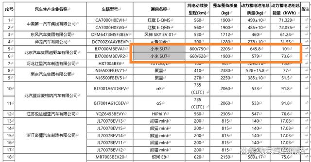这次工信部还公布了小米SU7的续航信息,101kWh电池包的最长续航为800km(两驱版本),73.6kWh电池包的最长续航是668km(两驱版本),这是一个极具革命性的概念。