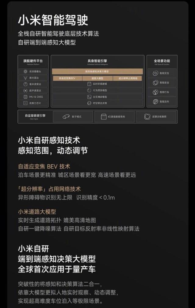 实际上,小米对汽车行业的理解超乎我们的预想。无论在自动驾驶或是智能座舱的研发上,小米始终秉持卓越创造力和前瞻视野的理念。应用了澎湃OS的座舱互动框架,实现了五屏联动与流式OTA升级技术的完美结合,大大提高了用户使用的便利性和满意度,使小米汽车在智能交互领域享有盛誉。