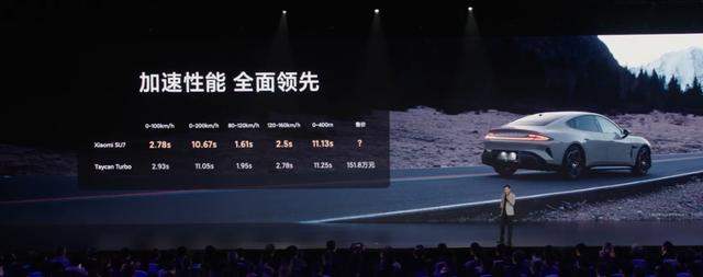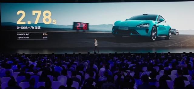 小米 SU7 可以做到 2.78 秒的 0-100km/h 加速,超过保时捷 Taycan Turbo 的 2.93 秒。
