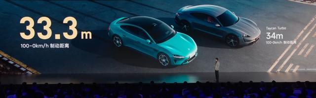 此外,小米 SU7 支持弹射起步,还有 Boost 模式,无限自由度自定义驾驶模式;百公里时速下制动距离为 33.3m,也超过了保时捷 Taycan Turbo 的 34m。