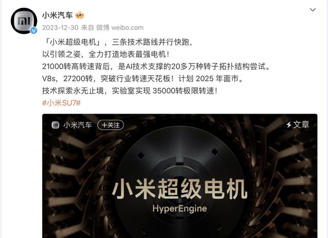 众所周知,智能电动汽车的核心主要包含电机、电池、智能驾驶等。可以说,小米在这些关键领域都 “小有成就”。首先要说的是发动机,说实话,作为汽车圈的 “新兵”,能同时推出三款超级发动机实属不易。更让人惊讶的是,它的转速已经超过了特斯拉,V8 的转速更是刷新了行业天花板,达到了 27200 转/分钟!