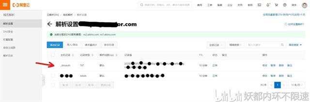 这个时候你就需要在现在给你域名提供DNS解析服务的提供商(比如阿里云)那里手动添加一条解析记录(如下图红框里所示)。