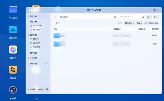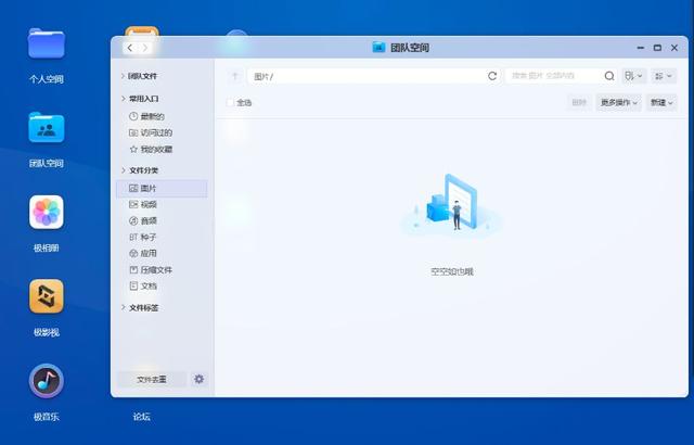 极空间新Z4划分出了个人空间和团队空间两种文件存储的方式,可以说是既解决了个人存储问题,还完美满足了小型工作室要求多人协同的工作诉求。
