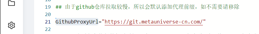 解决:修改青龙 config.sh 文件中的GithubProxyUrl参数为: GithubProxyUrl="https://git.metauniverse-cn.com/"