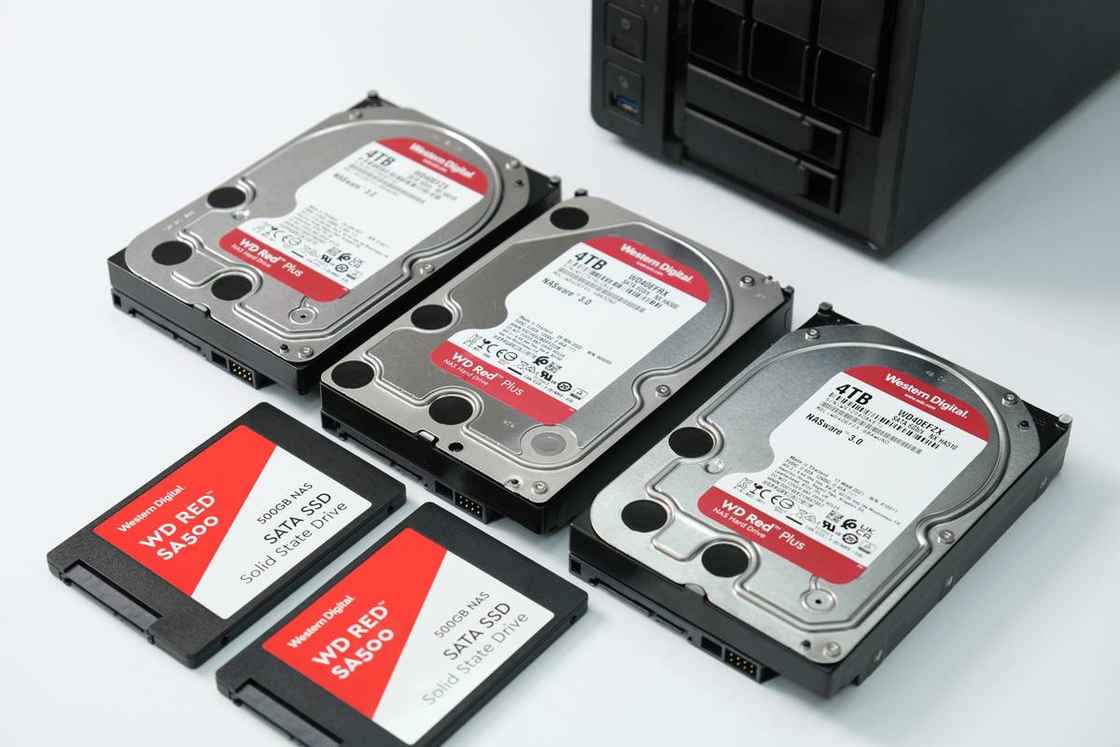 我采用的硬盘是3块西部数据红盘Plus 4TB和2块西部数据red SSD 500GB,西部数据红盘Plus全系采用CMR架构(垂直辅助磁记录),拥有更好的性能与更快的RAID重建能力。它还采用独家NASWare 3.0技术,该技术专为NAS环境而设,平均故障间隔时间比标准硬盘改善35%,极大程度减少 NAS 系统中的常见硬盘问题。