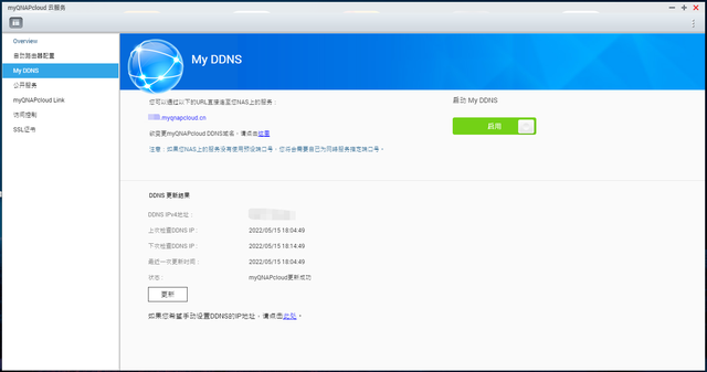 其次需要启用 myddns,IPv6 地址是一长串地址,且会隔一段时间更新,每个NAS厂商都是支持NAS自动转发的。