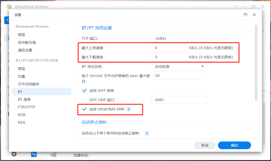 群晖的Download Station它的内核是transmission,用来作为PT下载不会有什么问题。但是需要注意的两个问题,一个是需要修改最大上传速度,改为无限制,第二个最好启用UPnP,如果没有UPnP,那就给Download Station做一下端口转发。