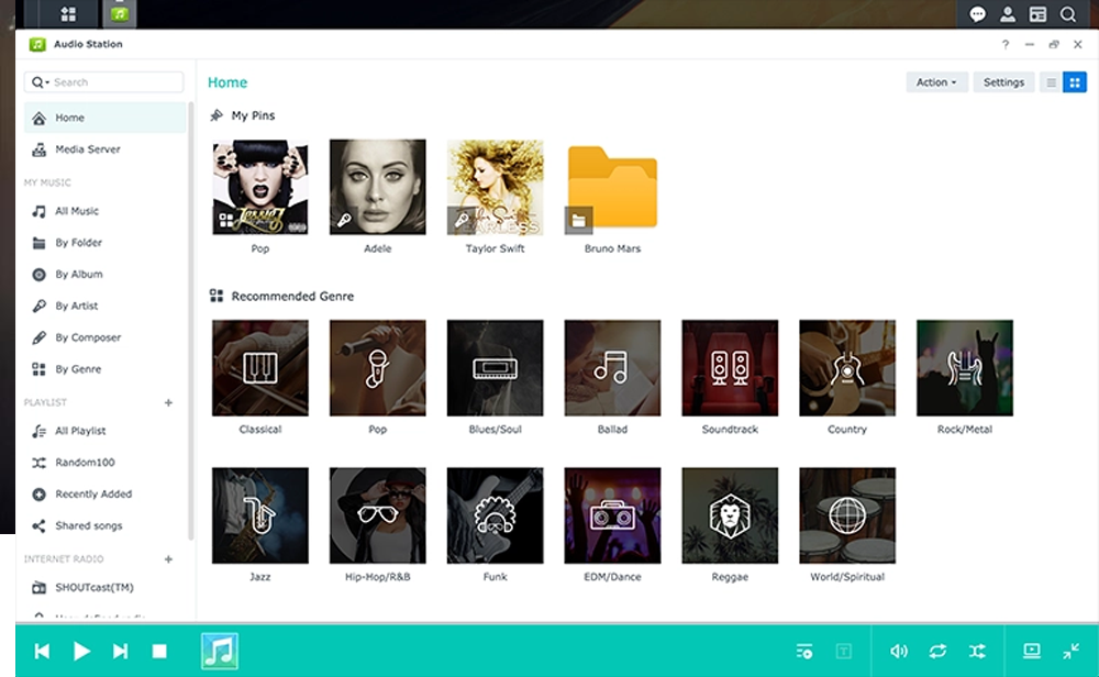 说到家庭影音,这里就一定到提提“Docker ”这个插件了,它属于 Linux 容器的一种封装,提供简单易用的容器使用接口,也是目前最流行的 Linux 容器解决方案;它可以将应用程序与该程序的依赖,打包在一个文件里面,然后运行这个文件,就会生成一个虚拟容器,你可以用来安装爱奇艺、腾讯视频等影视下载工具,轻松实现追剧自由,也可以将群晖NAS打造成个人专属的云端音乐服务器,还自带播放器。