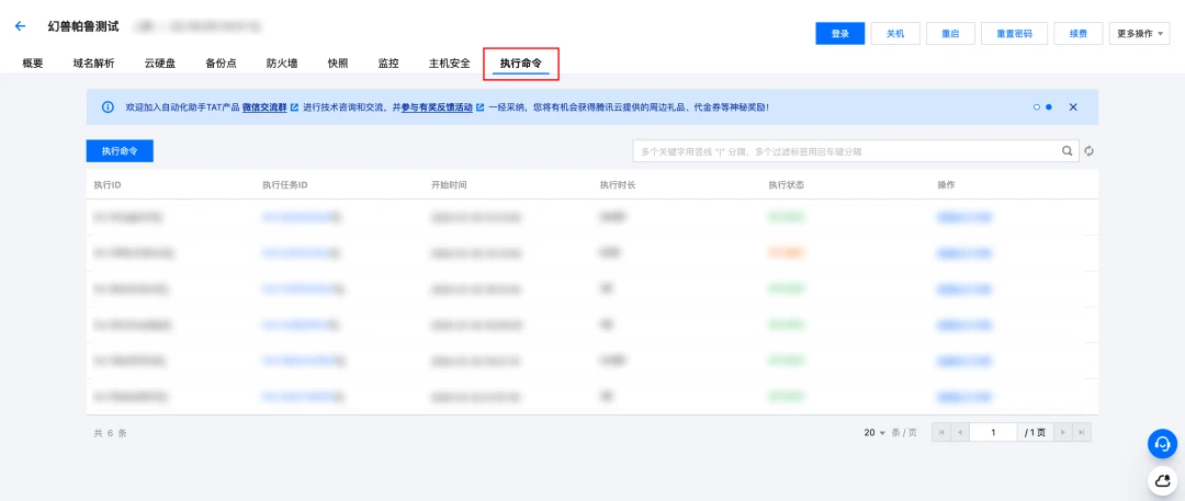 1、在轻量应用服务器控制台,选中对应服务器,单击进入实例详情页,找到【执行命令】页签,即可使用自动化助手的【执行命令】功能。