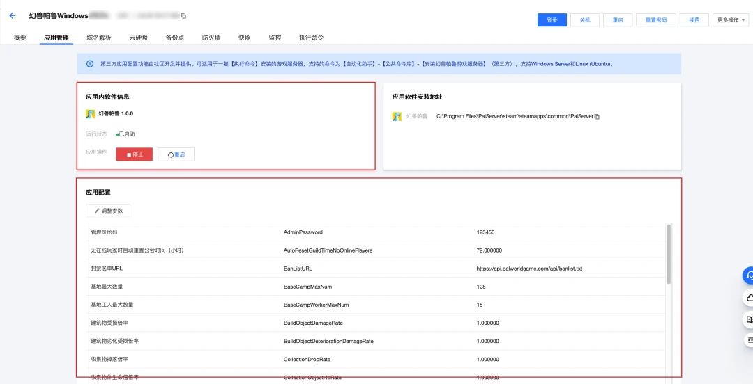 1、重启服务器后即可生效(实例重启后,您部署的幻兽帕鲁将会随之自启动)。