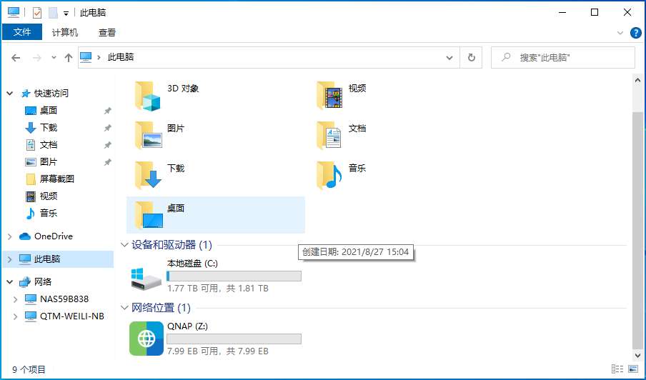 然后返回“我的电脑”,就可以发现网络位置多了一个 QNAP Z 盘。使用起来十分方便,就和本地磁盘一样。