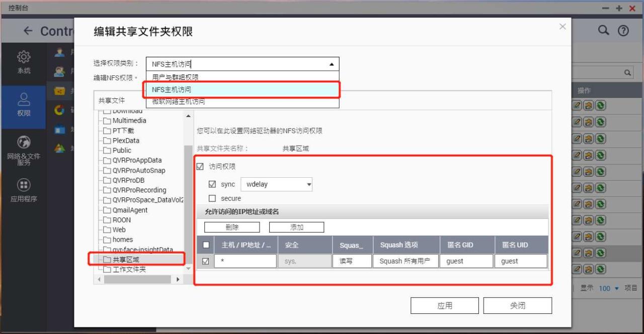 进入之后选择“NFS 主机访问”,设置访问权限。