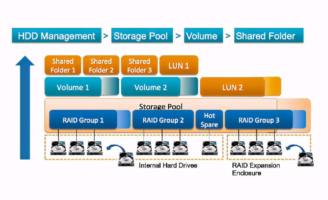 通过 HDD/SSD 构成存储池 Storage Pool 的过程就是使用磁盘阵列(RAID)来进行。