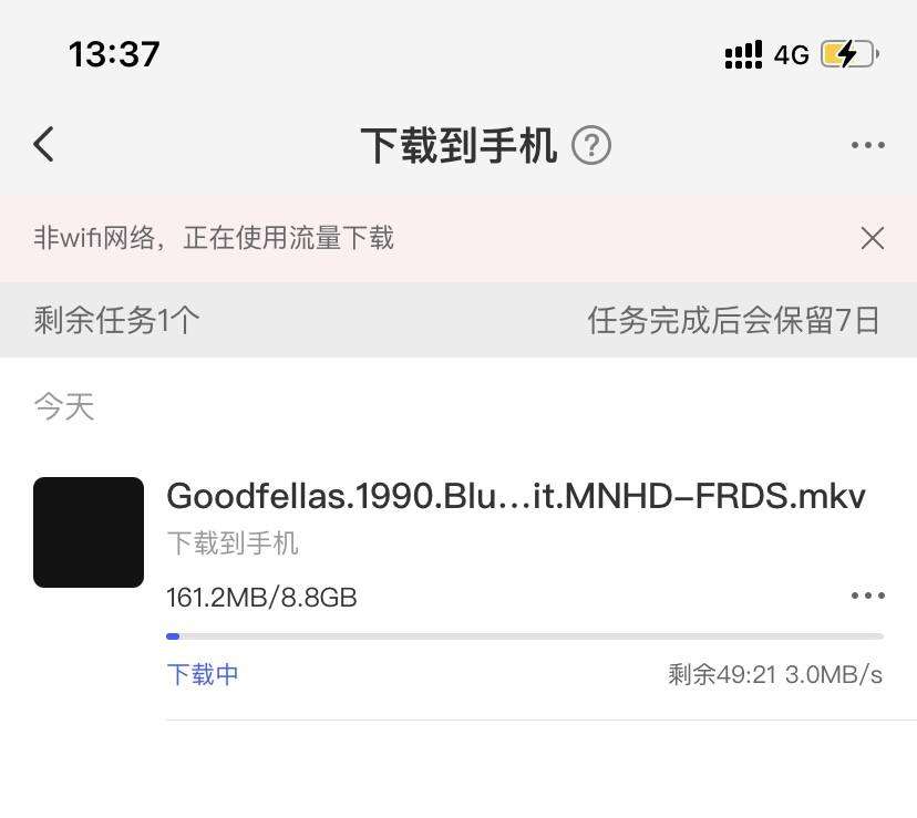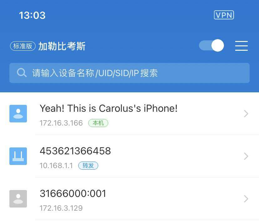 这个连接过程非常快,感觉就 1 秒不到就进去了,进去后可以看到手机右上角出现了 V 皮 N 的字眼。这时候通过手机就可以访问家中的各种 NAS 存储设备,速度基本上可以达到带宽满速。
