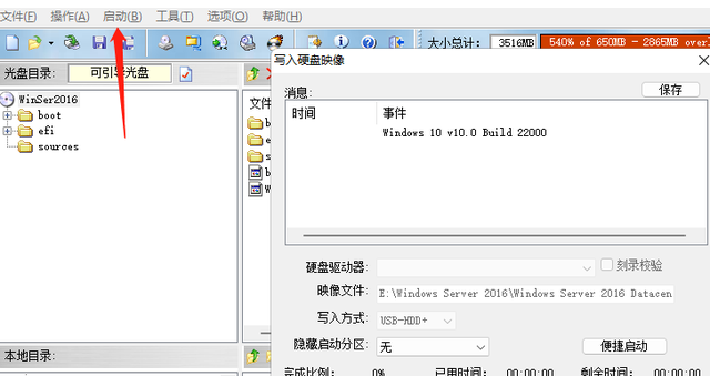 这边刚开始用了微pe,通过自带的dism写入的方式,遇到点问题,所以使用了UltralSO制作镜像,点击准备好的镜像iso文件,点击启动,写入u盘,等待片刻即可。