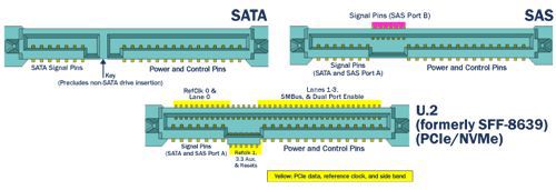 SAS 和 U.2 接口的样子