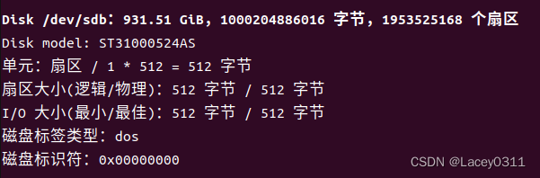 /dev/sdb:当前挂载磁盘所在的设备块名称,可通过上面fdisk命令看到