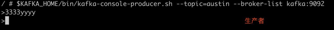 docker exec -it kafka sh $KAFKA_HOME/bin/kafka-console-producer.sh --topic=austin --broker-list kafka:9092