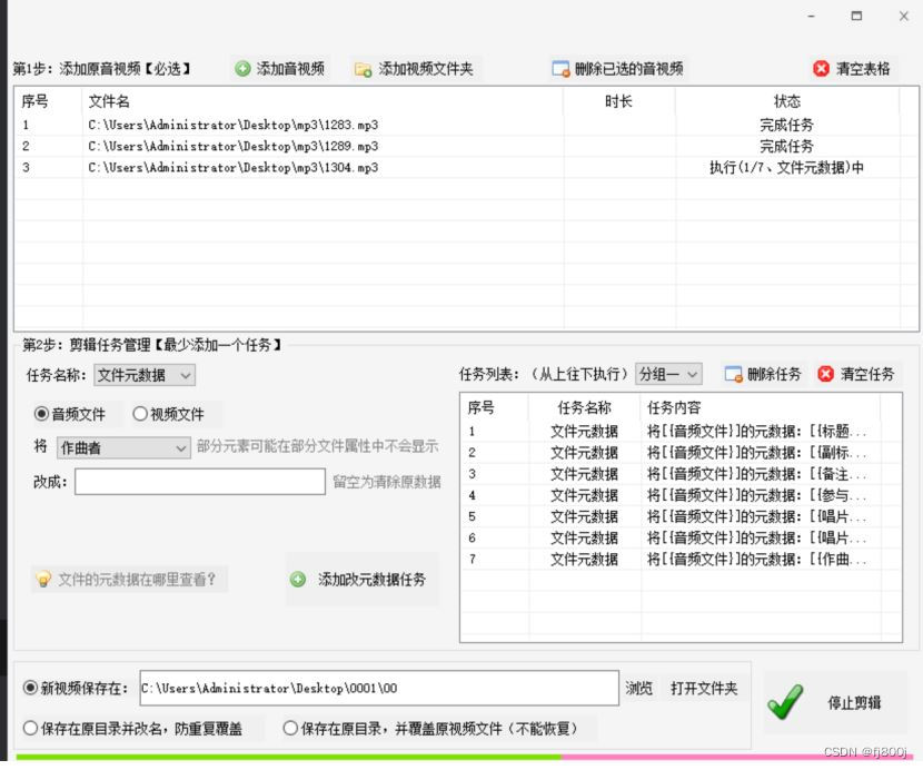 好了,是不是很简单?视频和音频文件操作的方法一样,添加任务后,以后只要添加要改的文件就可以一键完成元数据修改了。