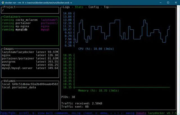 LazyDocker 是基于终端的一个可视化查询工具,支持键盘操作和鼠标点击。