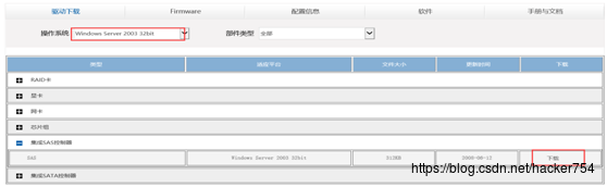 1.下载SAS RAID驱动(由于不同阵列卡配置RAID均不同,因此略过RAID配置过程);