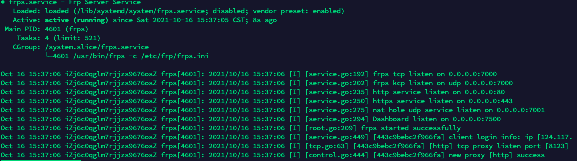 sudo systemctl enable frps