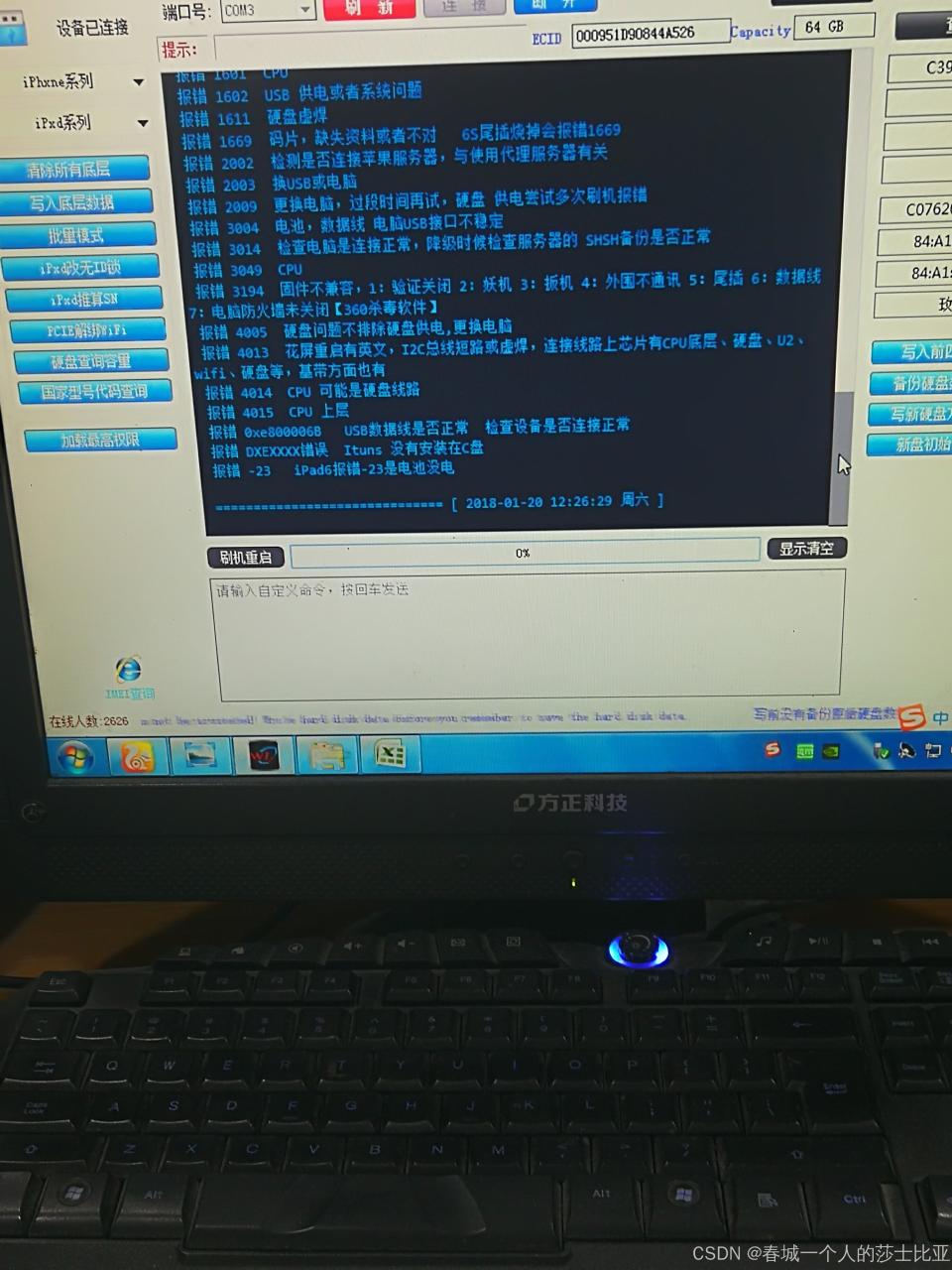 刷机报错充电IC到硬盘断线