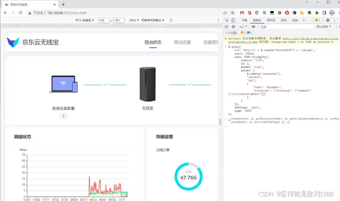 用 chrome 或者其它 chromium 内核的浏览器登录上京东云无线宝,按 F12 进入控制台。