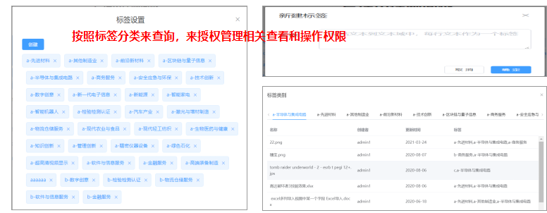 支持在批量上传的同时对文档批量做标签,同时支持一文档多标签的形式,支持 标签的分类管理;如果在一定词频和词库基础上,继续添加文档,系统会自动匹配标签。